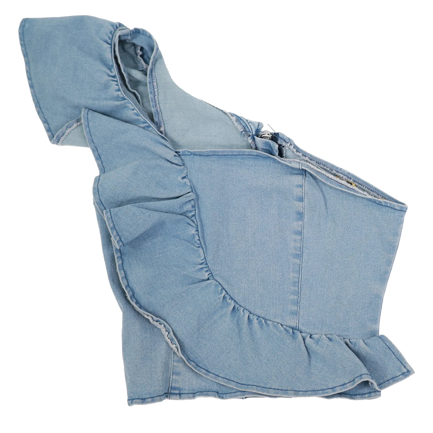 BLUSA DE DENIN DE UN HOMBRO CON FARALADO