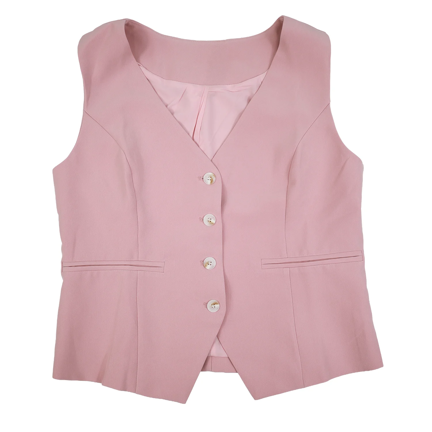 CHALECO CORTO ROSA TALLA M CUELLO V. Este chaleco de estilo sastre en color rosa pastel es una pieza versátil que combina la elegancia clásica con un toque moderno y femenino.